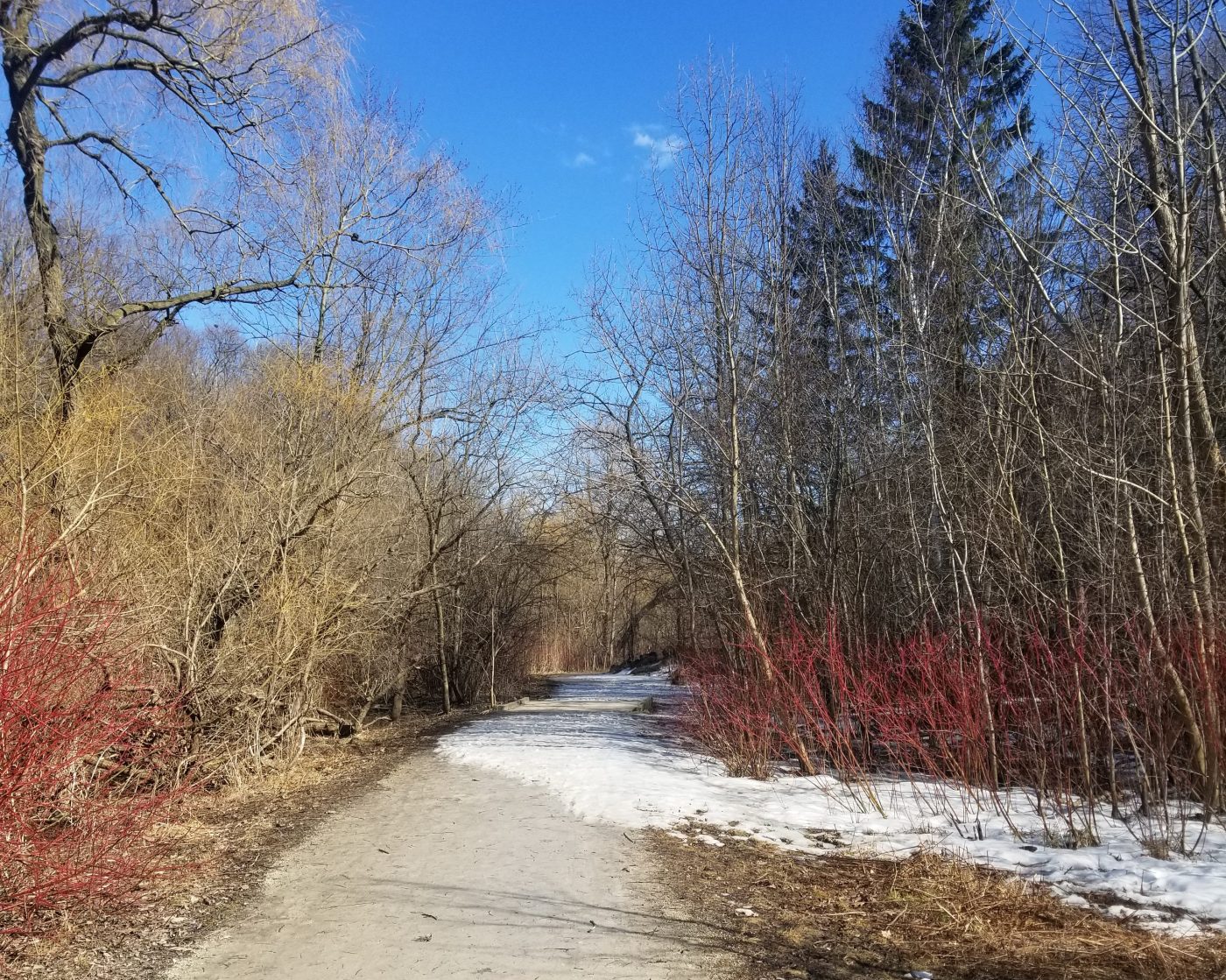Toronto has some great trails and outdoor spaces. And since I can’t always get to a trail outside the city for a walk, I spend a lot of time walking the different trails, parks, and even city streets throughout the year. I’m starting a monthly series where I post about my favourite city trails/walks in more depth but I wanted to give you a quick heads up of a few to explore as winter starts to wane. Sorry for the lack of pretty photos, it’s winter right now, but I promise, they all look even better once spring arrives and there are leaves on the trees!